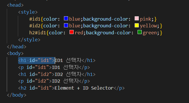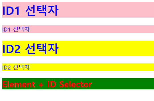 - 지정한 클래스에 스타일을 적용한다. - 아이디 선택자: #아이디{속성선언;}