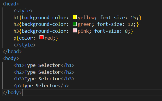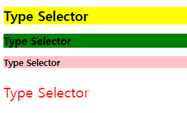 - 모든 태그에 스타일을 적용한다. - 타입 선택자: 태그{속성선언;}