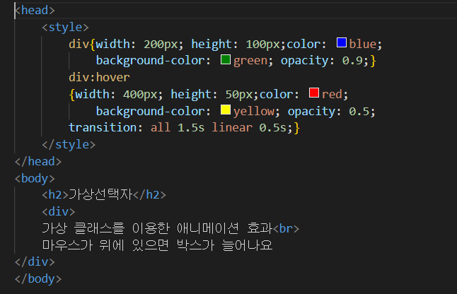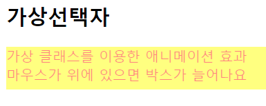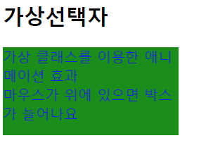 - 웹 문서에는 보이지 않지만 동작에 영향을 주는 속성을 가상 선택자로 이용