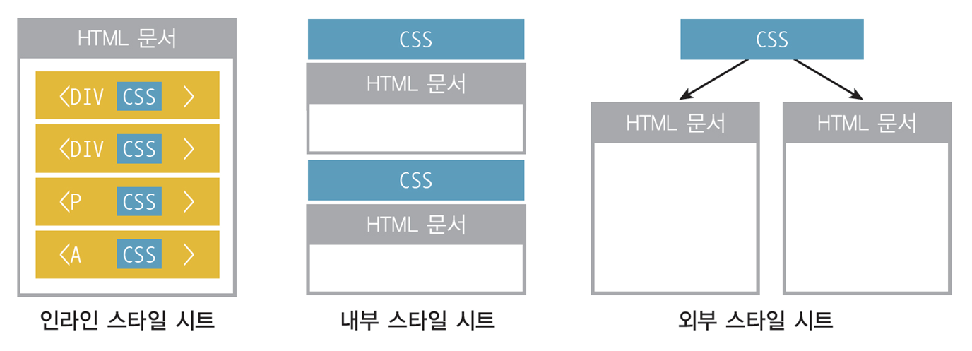 - 웹 문서에 글꼴, 색상, 정렬과 각 요소의 배치 방법 등과 같은 디자인 요소를 적용하는 데 사용