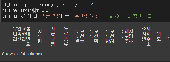 새로운 데이터 프레임에 가공 완료된 데이터 프레임 데이터 업데이트