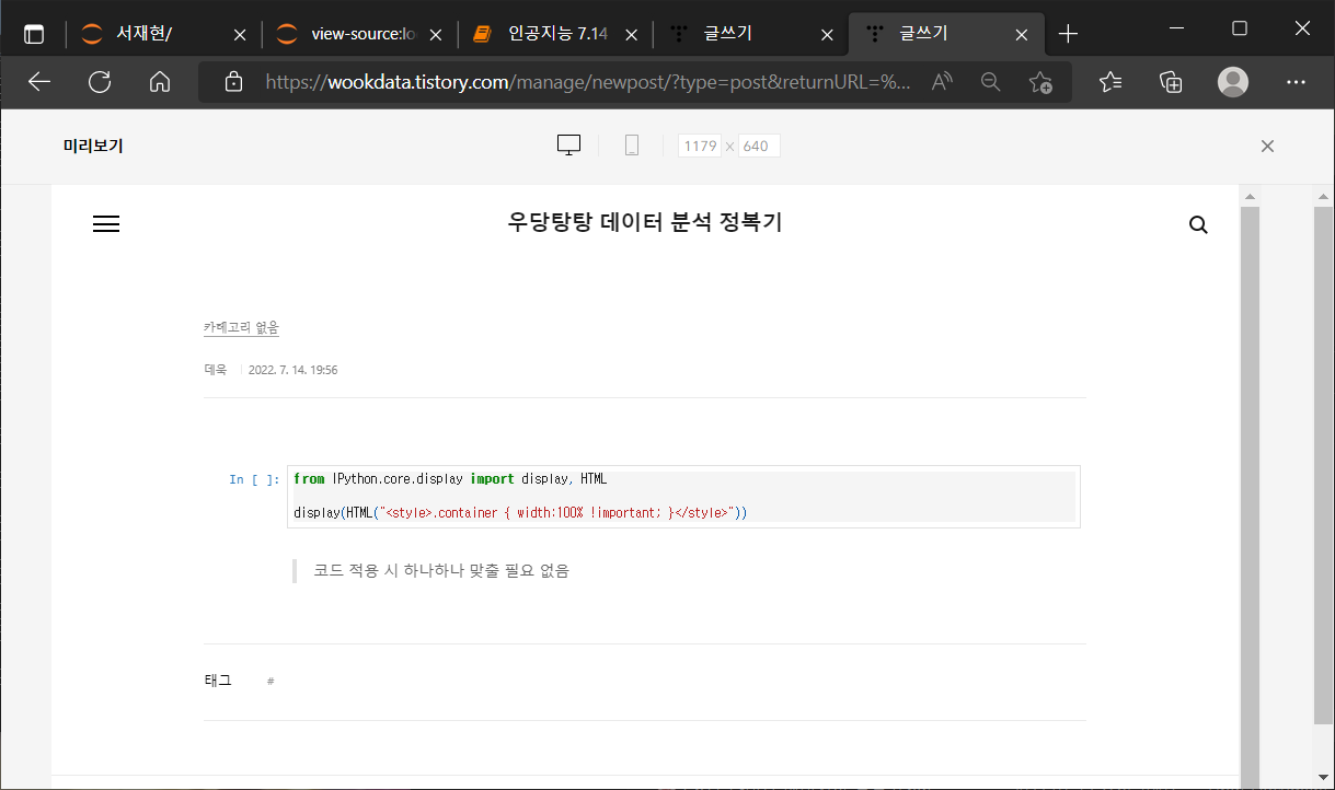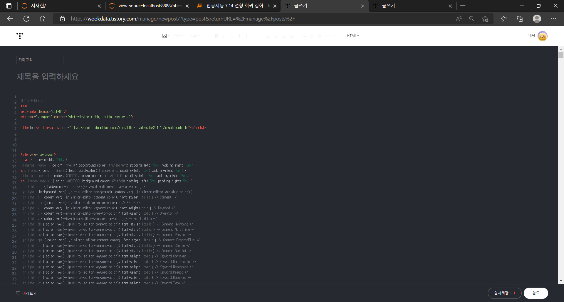 5. 티스토리 HTML모드로 전환, 붙여넣기