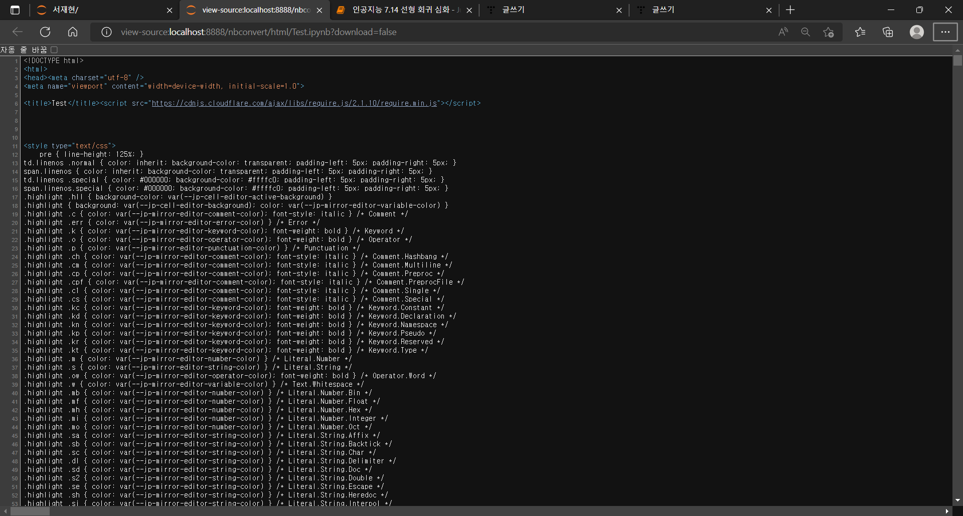주피터 노트북에 코딩 및 마크다운한 내용을