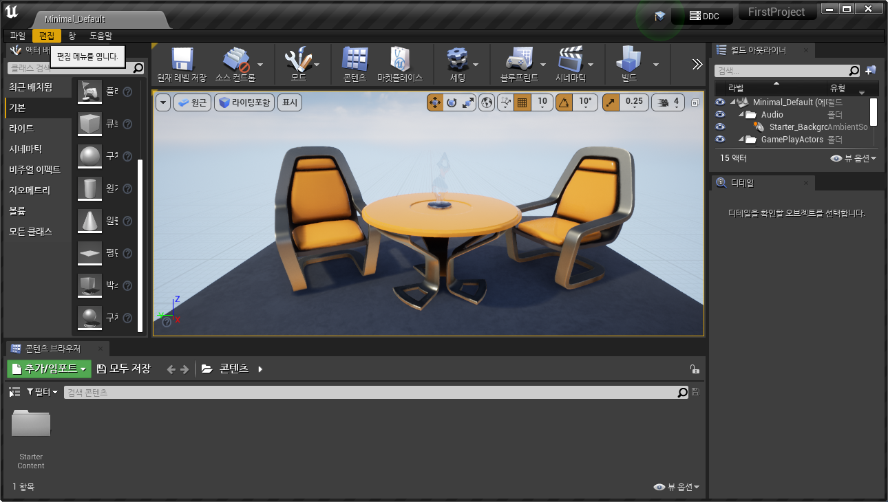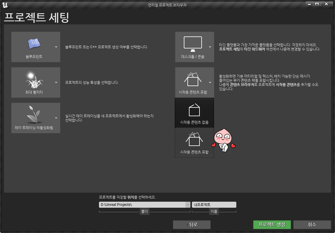 개발할 프로젝트의 장르에 따라 템플릿 선택 / 필자는 게임, 기본