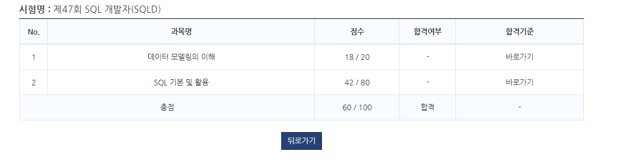 ADsP를 2018년 4월에 가볍게 클리어 한 후, SQLD 시험을 19년 8월에 봤었는데..