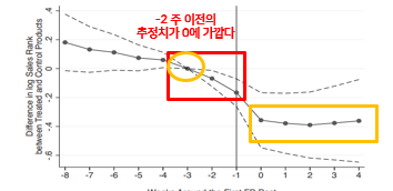 ‘-2 주’ 이전의 추정치가 ‘0’에 가깝게 나타나야 함