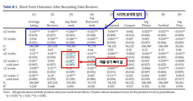 “시각적으로 보여준 가짜 리뷰를 구매한 결과와 동일한 결과를 회귀 분석을 사용”