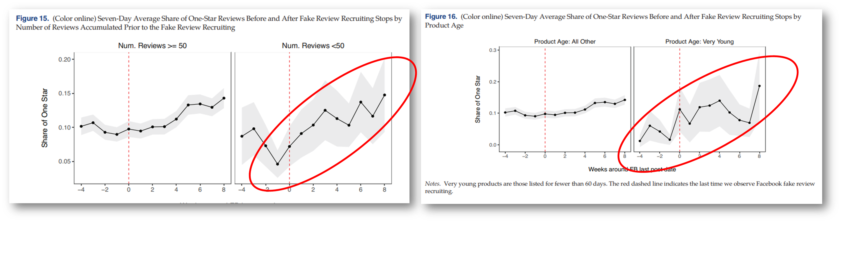 - 가짜 리뷰 캠페인 후, 가짜 리뷰 구매 제품과 가짜 리뷰를 구매하지 않은 다른 제품의 1점 리뷰와 비교