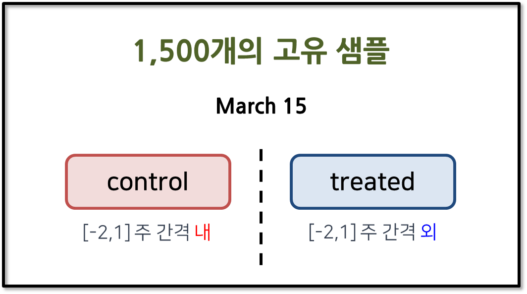- 서로 다른 마케팅 활동을 이용한다면, 판매 변화가 가짜 리뷰 삭제로 인한 것인지, 마케팅 활동으로 인한 것인지를 구분하기 어려움 - 통제군과 실험군의 초기 판매 추세는 유사할 것