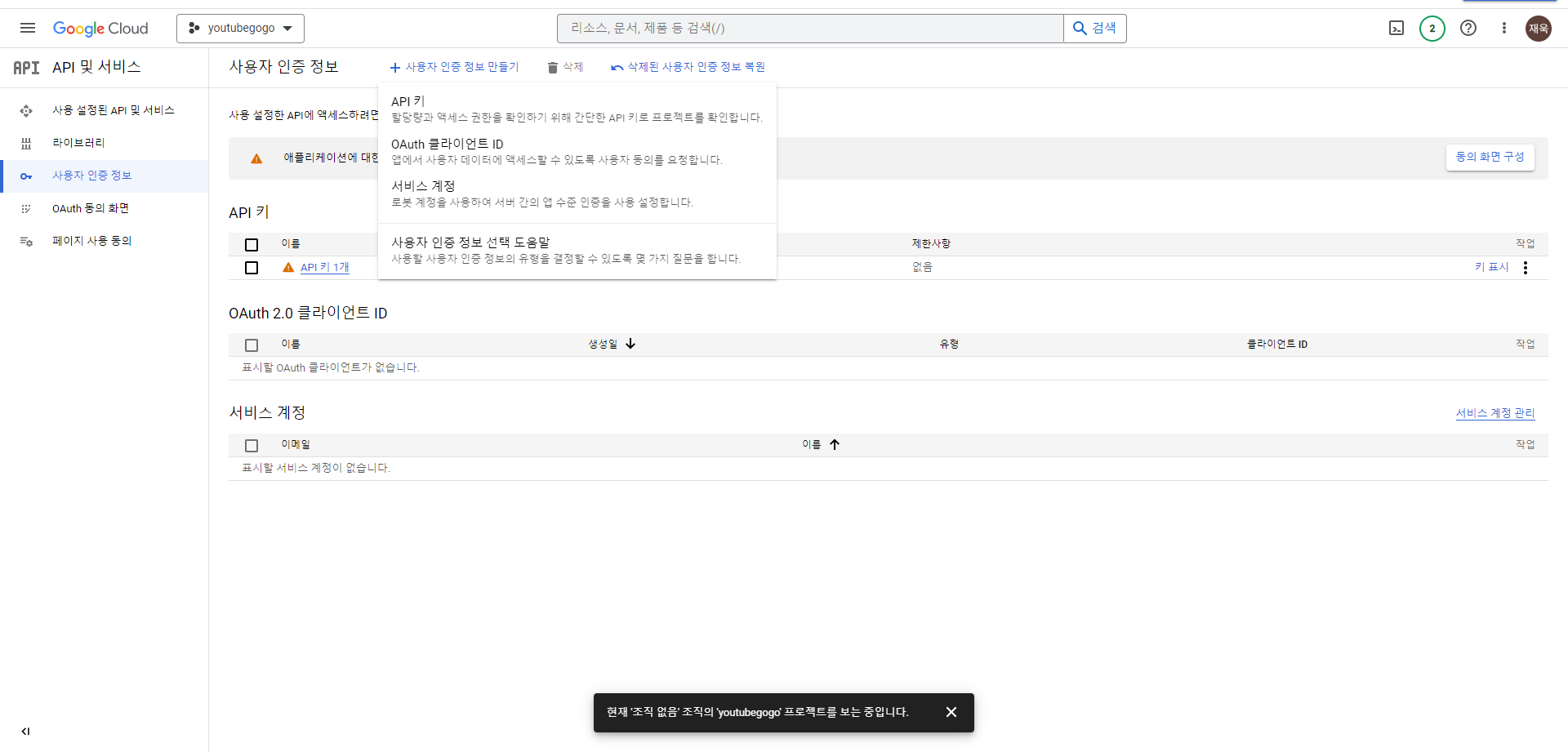 YOUTUBE_API_SERVICE_NAME="youtube" # 이용할 API