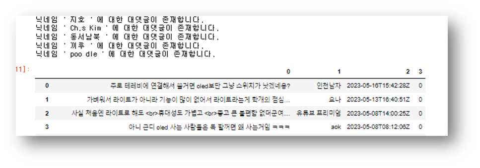 print('닉네임 \'',comment['authorDisplayName'],'\' 에 대한 대댓글이 존재합니다.') #확인을 위한 코드
