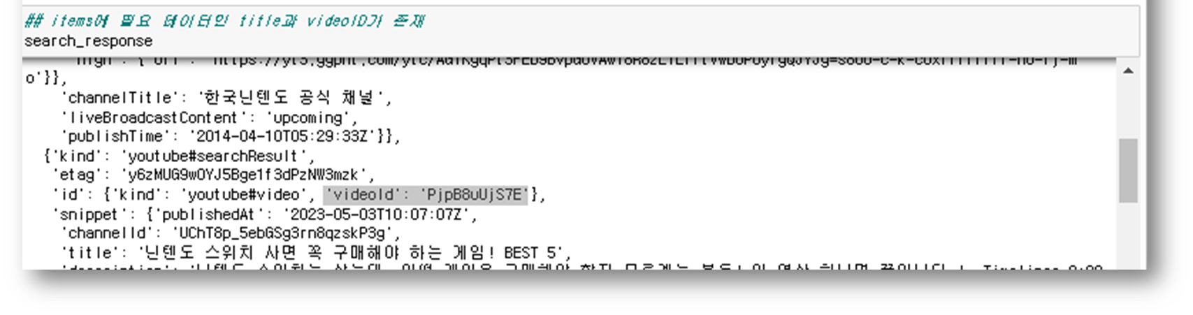 video_id = item['id']['videoId'] # 비디오 ID 그대로 추출