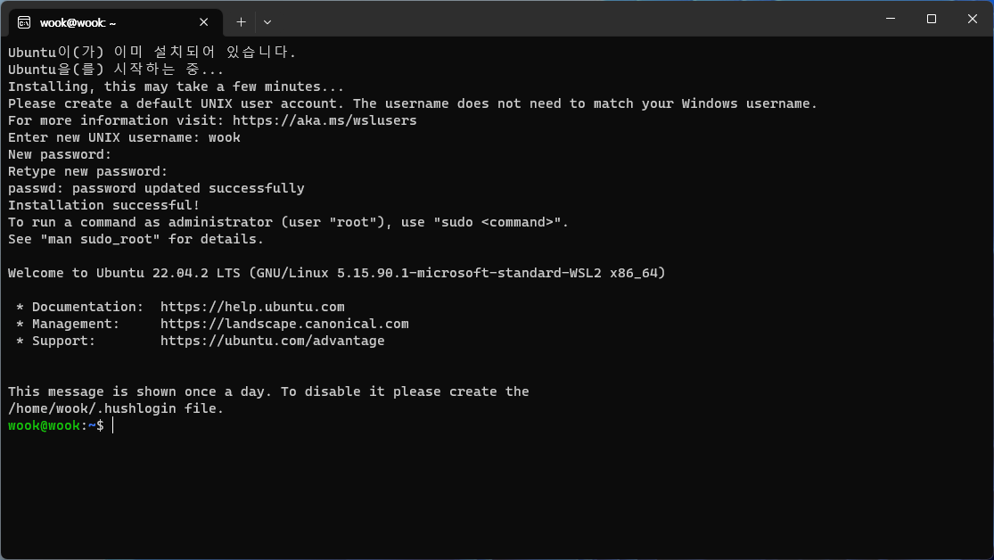 이런식으로 리눅스 우분투 환경이 생성된 것을 확인할 수 있다.