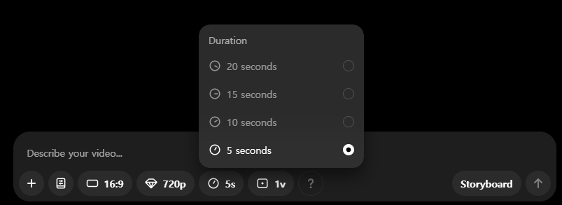 720p는 5초만 가능하며, 480p는 10초까지 가능하다.