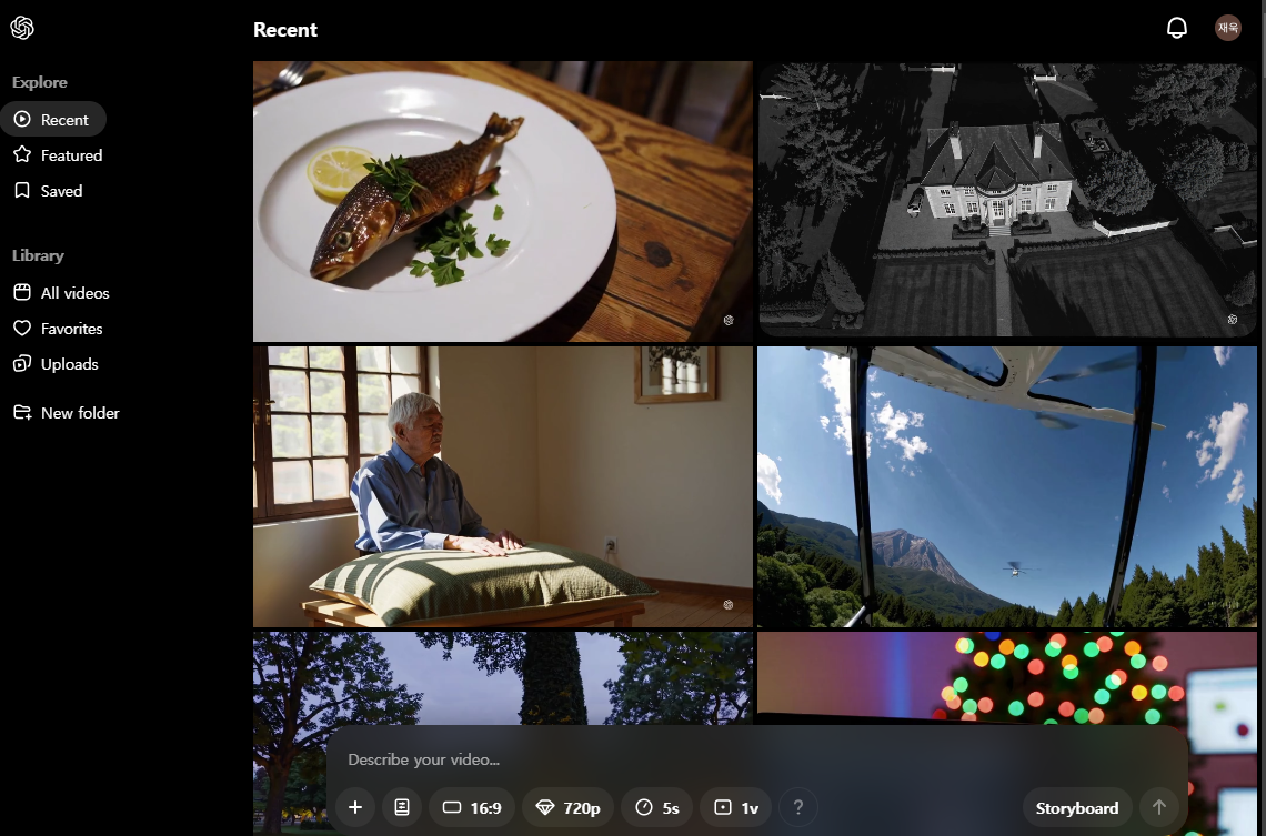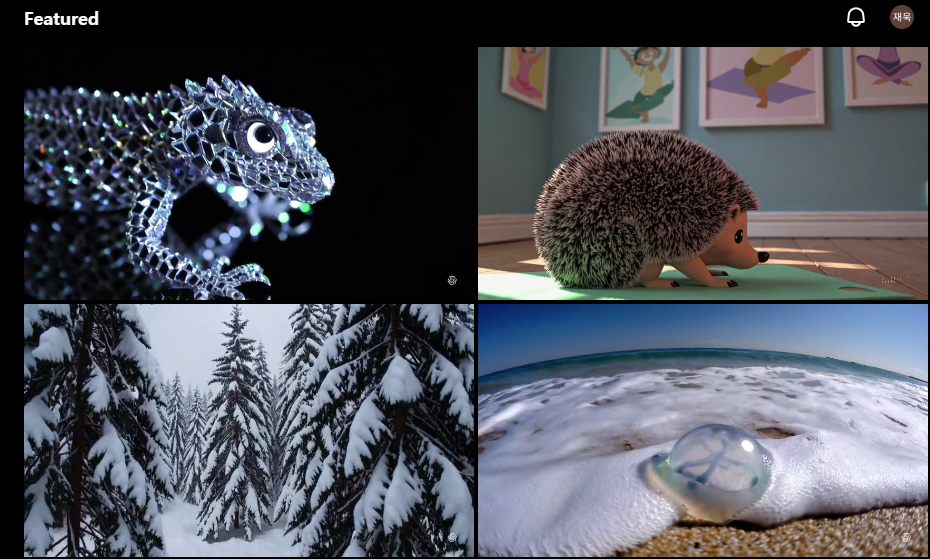 아까 Recent와 다르게, Sora의 스태프들이 선정한 특히 잘 만들어진 영상을 보여준다.
