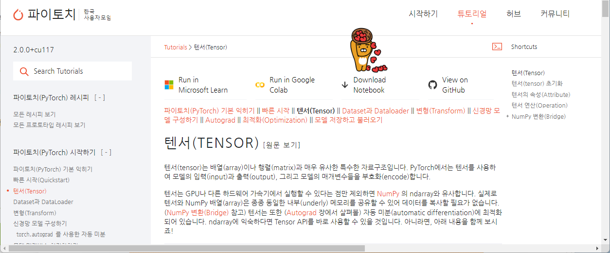 깔끔하게 정리는 못했지만... 파이토치를 처음 접해보는 분이라면, 아래 코드를 보고 기본적으로 다루는 방법을 연습 하실 수 있을 겁니다! In [1]: import torch In [2]: print(torch.__version__) print(torch.cuda.is_available()) 1.9.1+cu111 True Pytorch Components 1. torch 메인 네임스페이스입니다. Tensor 생성, tensor간의 연산 등 다양한 함수가 정의되어 있습니다. Numpy와 유사한 구조를 가집니다. 2. torch.autograd 자동 미분을 위한 함수들이 포함되어져 있습니다. 자동 미분의 on,off를 제어하는 콘텍스트 매니저(enable_grad/no_grad)나 자체 미분 가능 함수를 정..