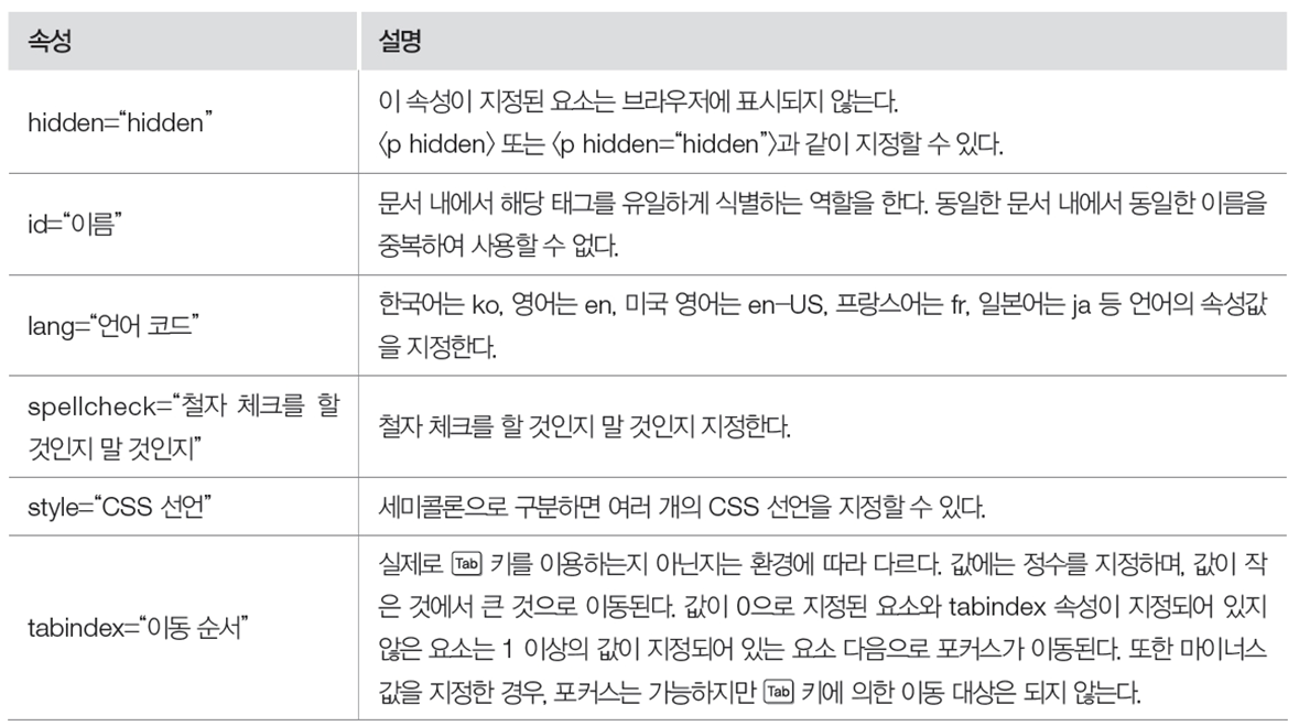 - 모든 태그에 공통적으로 사용 가능한 속성